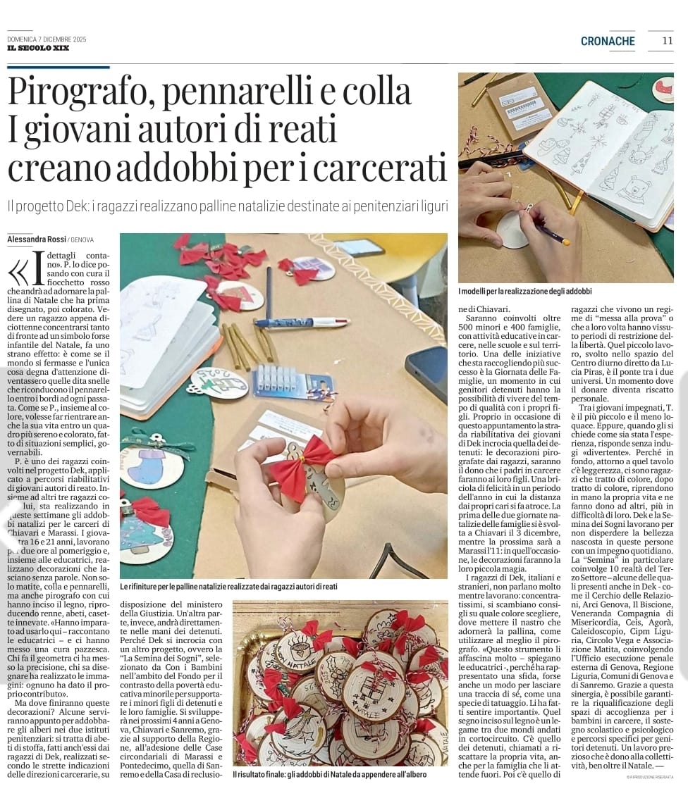 CEIS Genova: Il progetto Dek - i ragazzi realizzano palline natalizie destinate ai penitenziari liguri