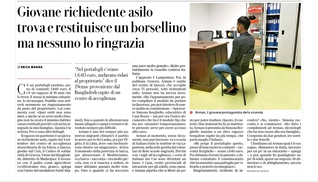 Giovane Richiedente Asilo del Ceis Genova trova e restituisce un portafoglio.